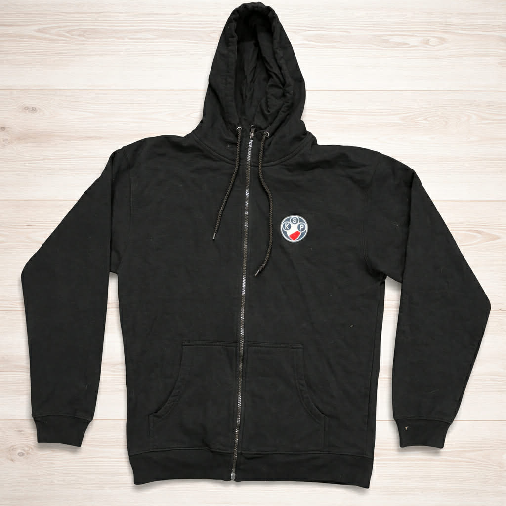 Bluza na suwak z kapturem. Bawełniana, haftowany herb.