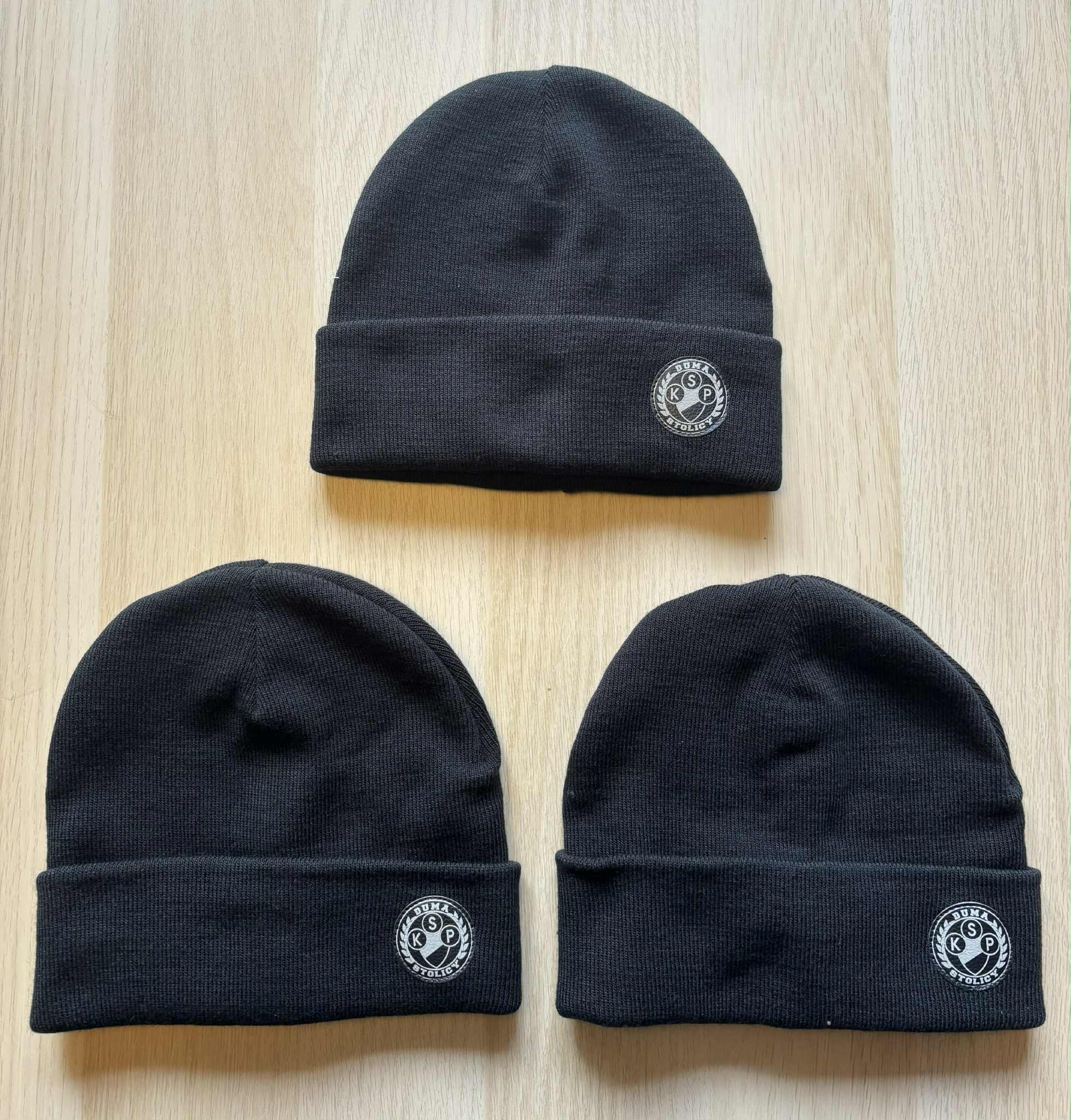 Czapka zimowa z herbem (szara skórka). Materiał-akryl. One size.